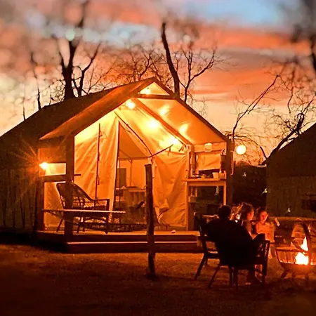 ( ex. Amazing Riverside Glamping Getaway: Charming Safari Tent Near Kingsbury, Texas )